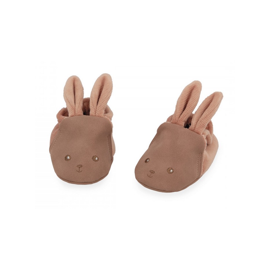 Les chaussons lapin assortis, adaptés aux bébés de 0 à 6 mois, complètent ce coffret. Ils mesurent 11 cm de long. Confectionnés avec des matériaux bi-matières, combinant le velours côtelé et la suédine, ils sont à la fois confortables et adorables aux pieds de bébé.