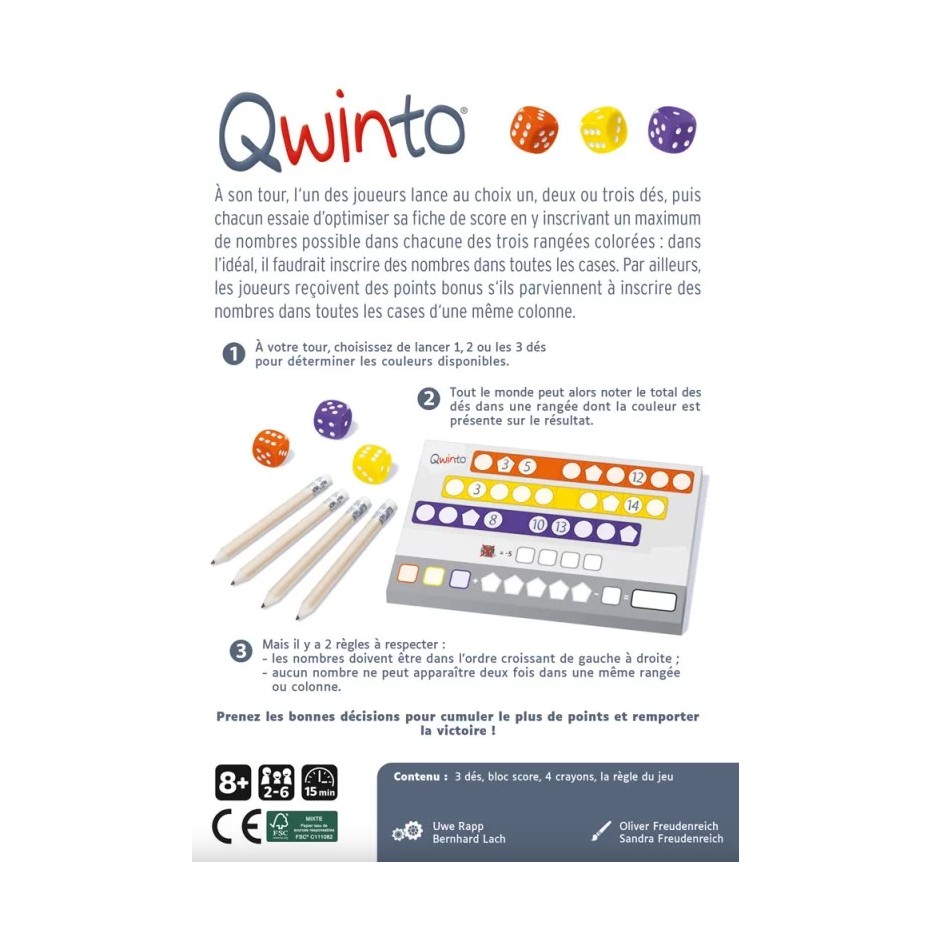 Avec Qwixx, impossible de s'ennuyer : à son tour, chaque joueur lance les dés et tout le monde peut utiliser le résultat pour cocher un chiffre d'une de ses rangées. Plus vous cochez de cases, plus vous marquez de points. Mais attention, les chiffres sont classés dans un certain ordre et une fois que vous en avez passé impossible de revenir en arrière.