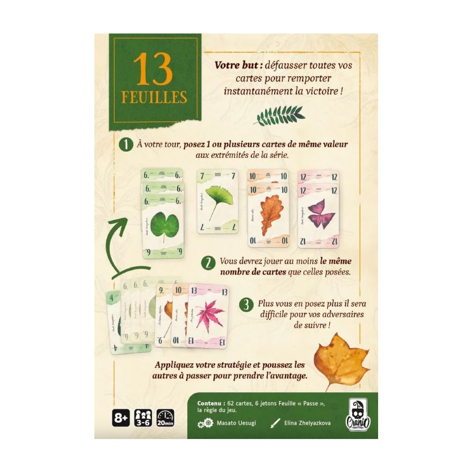 Contenu : 112 cartes Légumes, 16 cartes Légumes tabous (avec des cafards), règle du jeu