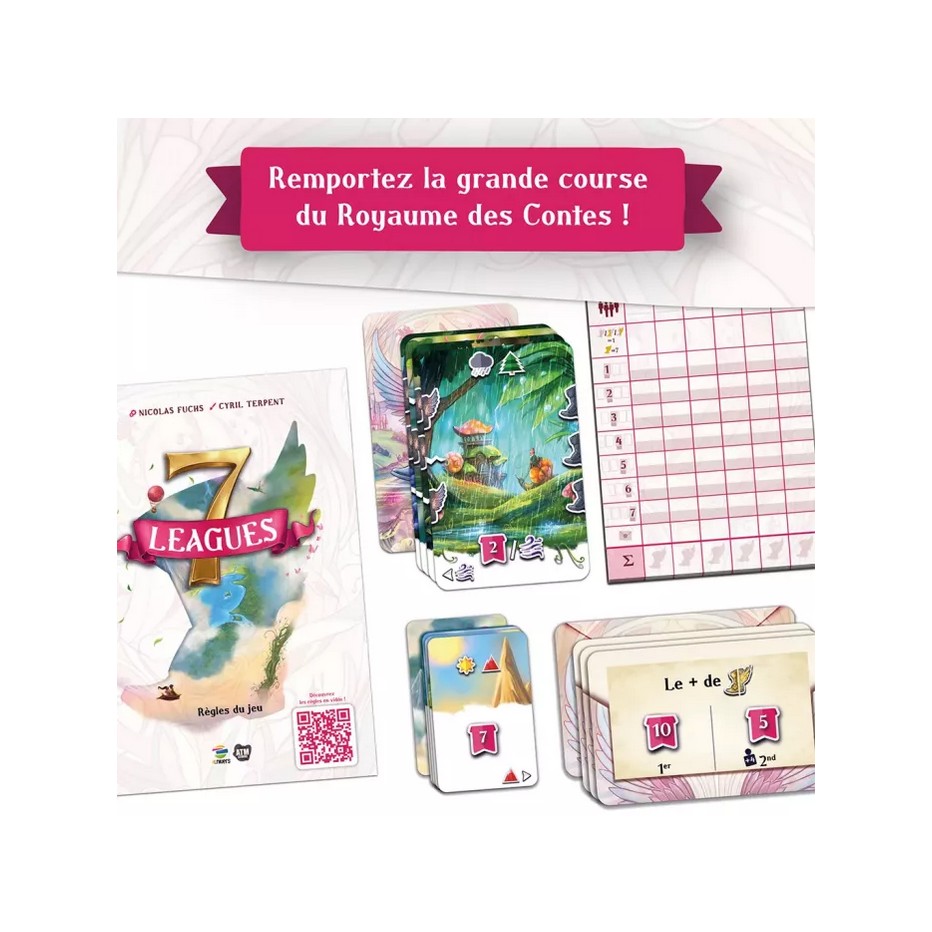 La boîte de jeu contient 90 cartes Aventure, 70 cartes Événement, 52 cartes Mystère, 12 dés spéciaux, 6 scénarios, 4 fiches Personnage, des cubes en bois et en