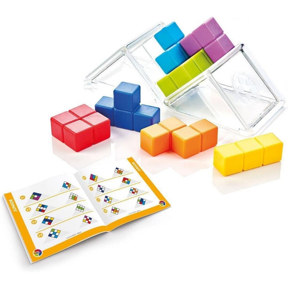 Jeu de logique évolutif sur le thème pirates. Un livre offre 48 défis répartis en 4 niveaux de plus en plus difficiles. Chaque défi désigne les éléments qui doivent rester apparents (bateaux, île déserte, barque, etc). Il s'agit alors de positionner les 4 pièces de puzzle sur le plateau pour cacher tous les autres motifs. Il y a 3072 combinaisons, mais une seule solution par défi! Très attractif, ce jeu est idéal pour débuter avec les jeux de logique.