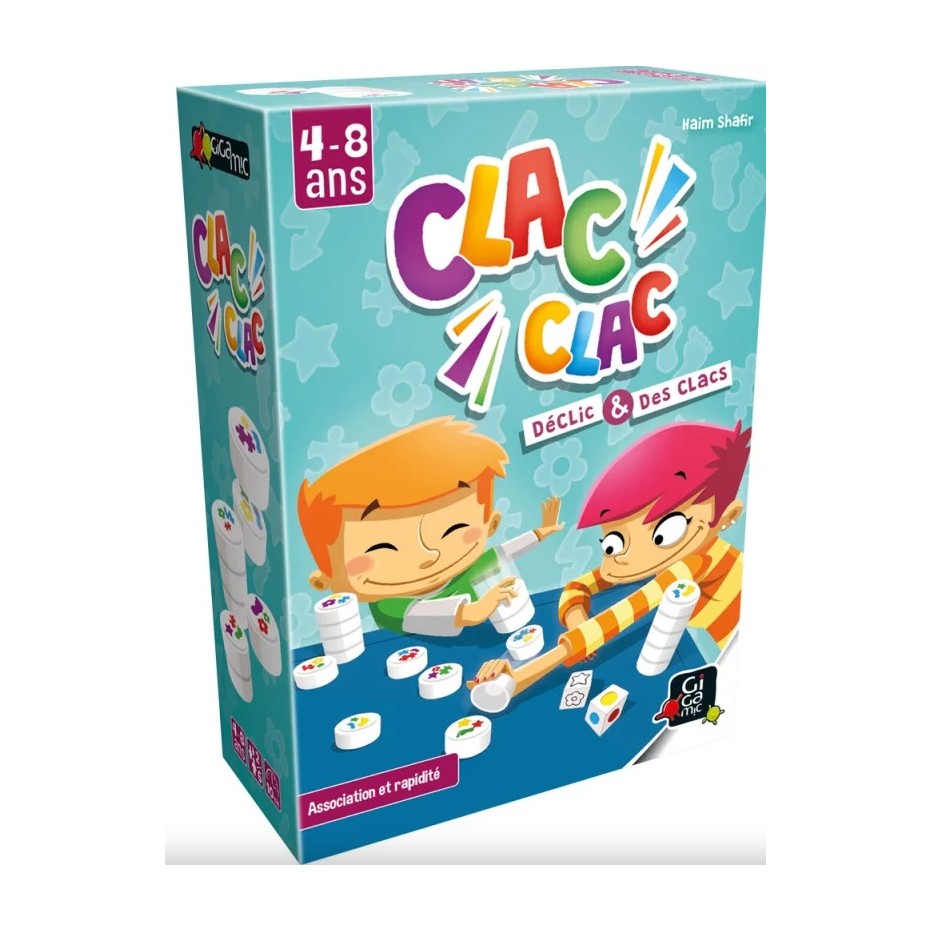 Chacun des 36 disques étalés sur la table combine 3 symboles reproduits dans 3 couleurs différentes. A chaque tour, on lance 2 dés qui indiquent quel symbole trouver et dans quelle couleur. Puis tous les joueurs tentent simultanément de s’emparer d’un maximum de disques reproduisant cette combinaison. Les disques sont aimantés : «Clac! Clac ! » ils s’empilent comme par magie, mais on ne peut utiliser qu’une seule main ! Il faut aller très vite pour les empiler sans se tromper, sinon gare aux pénalités… Puis on entame un nouveau tour. Quand tous les disques ont été ramassés, la plus haute pile indique le vainqueur. Ayez l’oeil vif, l’esprit clair et la main habile !