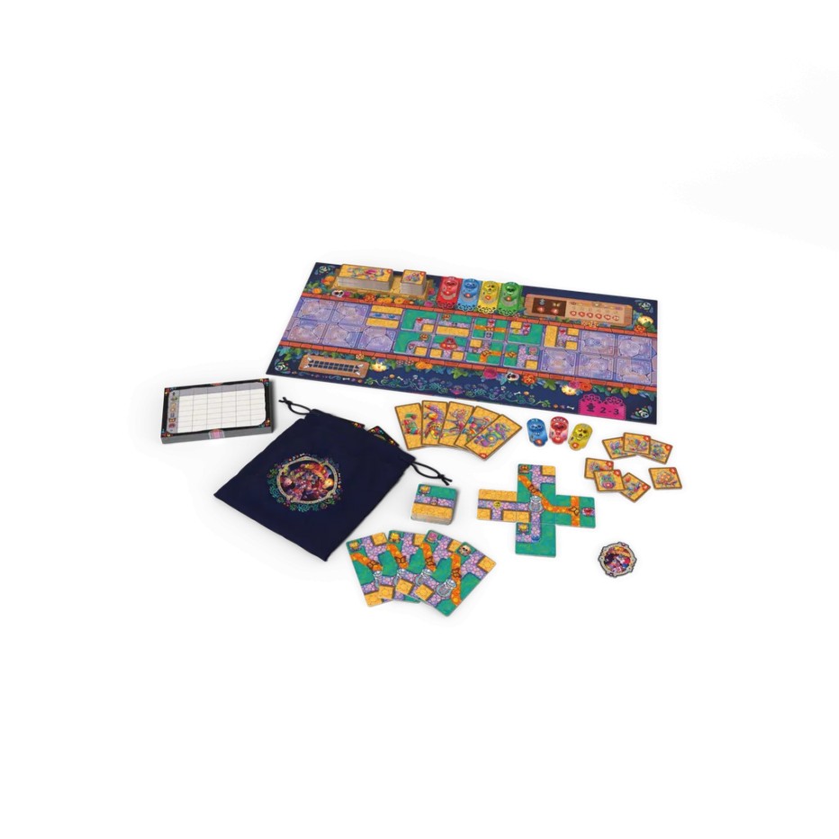 Plongez au cœur du Día de los Muertos en construisant votre village vibrant et coloré dans ce jeu de plateau captivant !