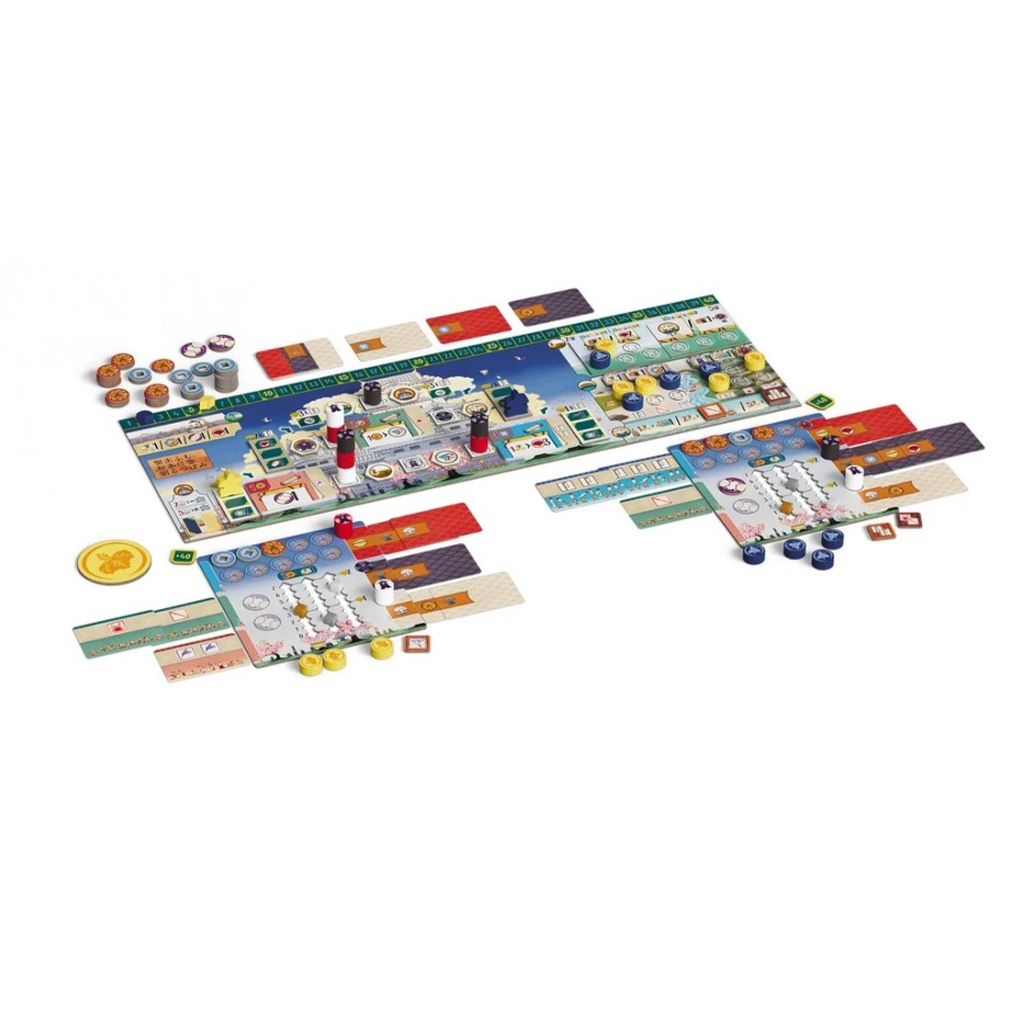 À chaque tour, vous utiliserez leurs jetons Lampe pour obtenir des ressources et activer des actions. Parmi les actions disponibles, vous pouvez acheter et améliorer des cartes Influence, placer des sceaux de clan sur les jardins et les terrains d’entraînement, déplacer votre courtisan entre les cercles d’influence ou commercer avec les Portugais.
