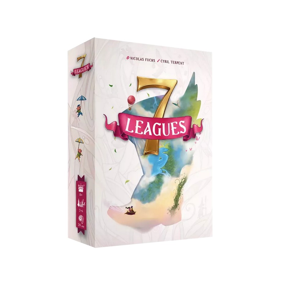 7 Leagues est un jeu de cartes stratégique et féerique pour 2 à 6 joueurs. Tour après tour, composez votre voyage en posant des cartes terrain devant vous et en repiochant selon la météo. Créez les meilleures synergies, activez des combos et formez des bottes pour marquer un maximum de points.