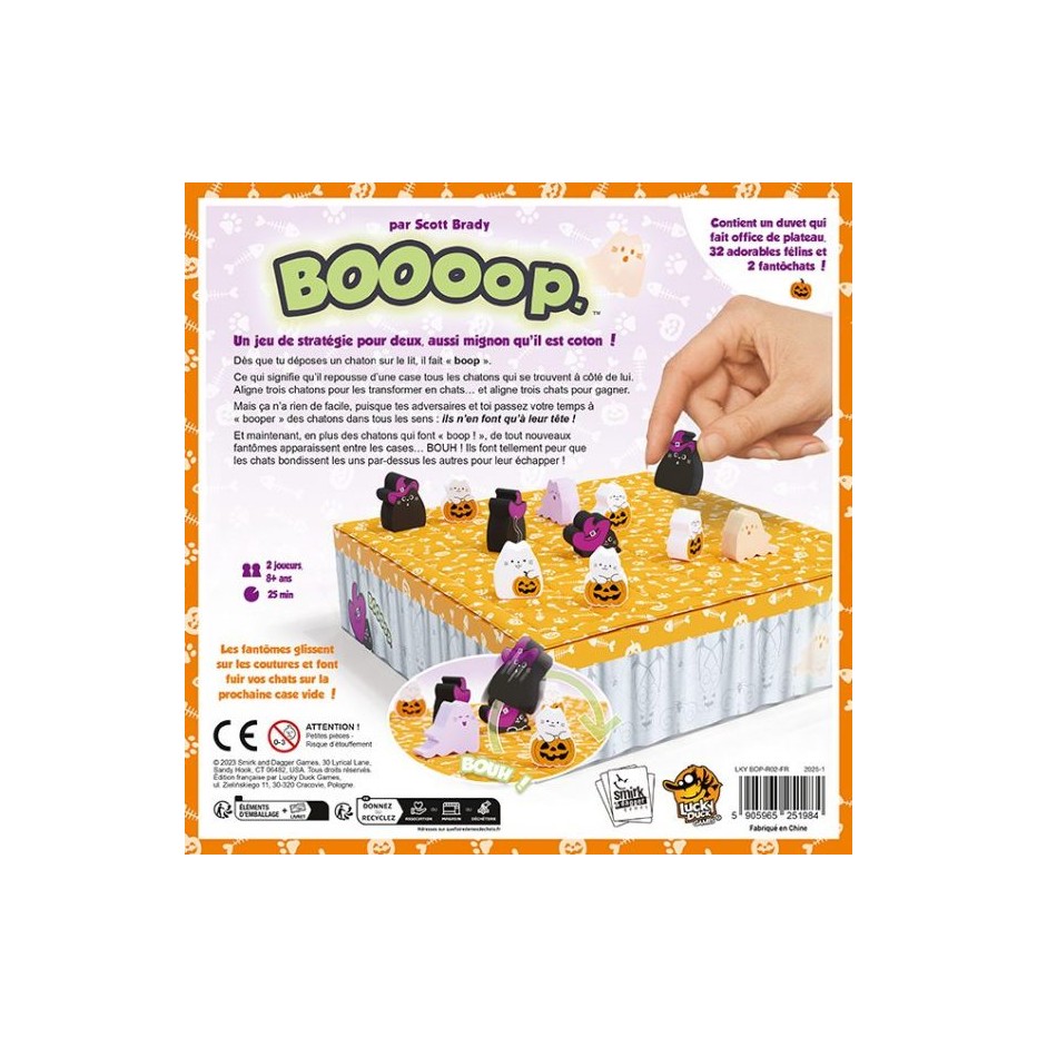 Aligne trois chatons pour les transformer en chats… et aligne trois chats pour gagner. Mais ça n’a rien de facile, puisque tes adversaires et toi passez votre temps à « booper » des chatons dans tous les sens : ils n’en font qu’à leur tête ! Parviendras-tu à « booper » tes chats pour décrocher la victoire ou te feras-tu éjecter du lit ?