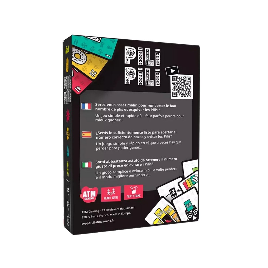 C’est cette dose de piquant qui a inspiré ce jeu de plis drôle, stratégique… et bien épicé. Dans PILI PILI, vous allez parier sur le nombre de plis que vous pensez remporter tout en vous adaptant à des missions qui viendront changer les règles à chaque tour.
