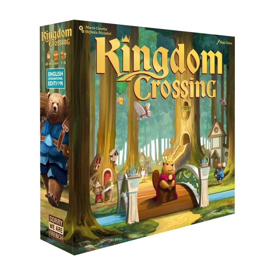 Kingdom Crossing allie les meilleurs ressentis des Eurogames dans un format compact (1h30 de jeu). Le jeu combine des mécaniques d’engine building et de programmation et contient un mode Solo avec un Automa et 4 niveaux de difficulté.