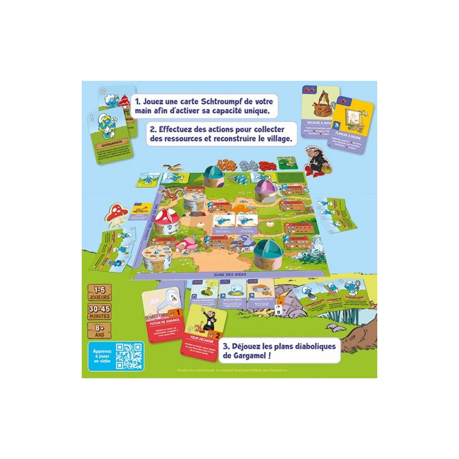 Les “+” produit : Un jeu coopératif d’initiation au deckbuilding ; Chaque Schtroumpf est unique ; La thématique et les mécaniques se marient très bien !