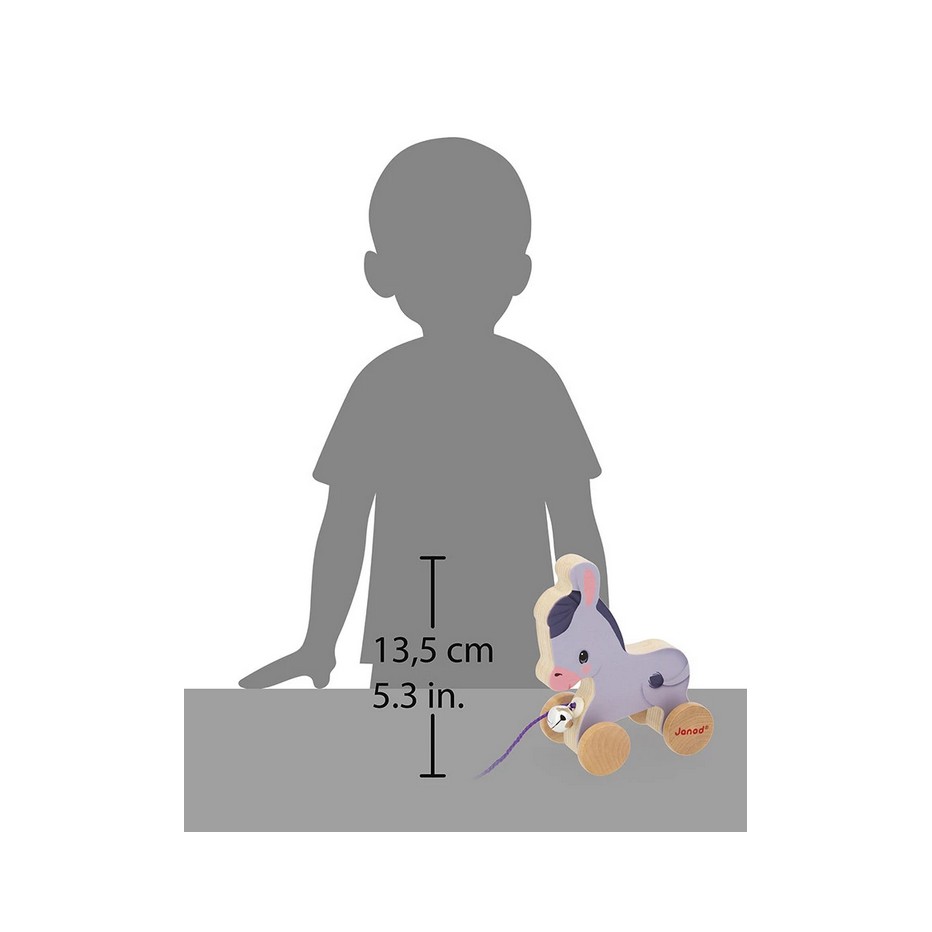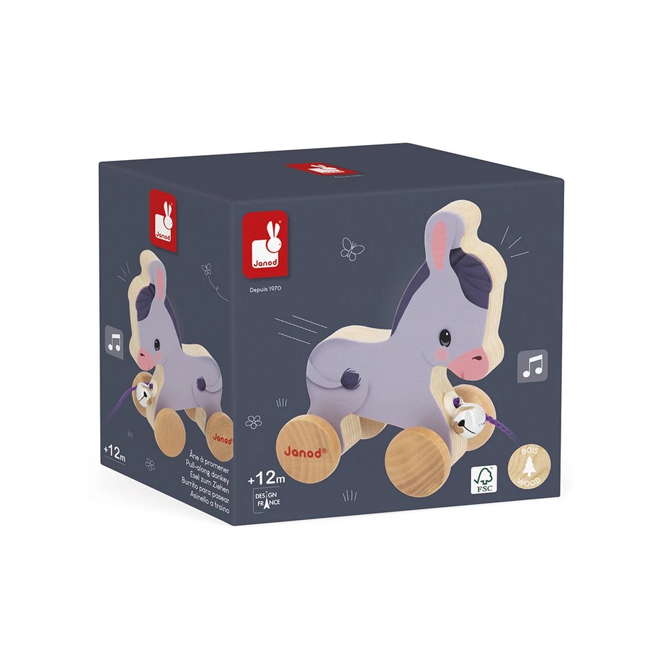 Avec sa jolie clochette à l’avant, ce petit âne en bois tintera joyeusement en roulant.