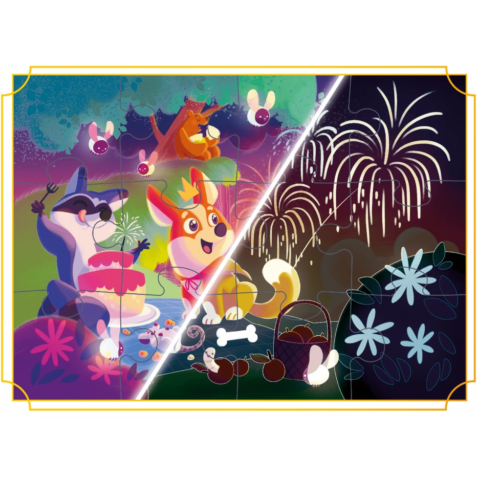 Les Puzzles + sont de retour ! Cette fois-ci, LOKI le facétieux corgi a eu une idée abracadabrante : des puzzles qui s’illuminent dans le noir… pour prolonger l’aventure même à la tombée de la nuit ! Chaque puzzle est basé sur une illustration unique spécialement conçue par une illustratrice enfant, que tu peux retrouver sur un joli poster accompagnant la boîte.