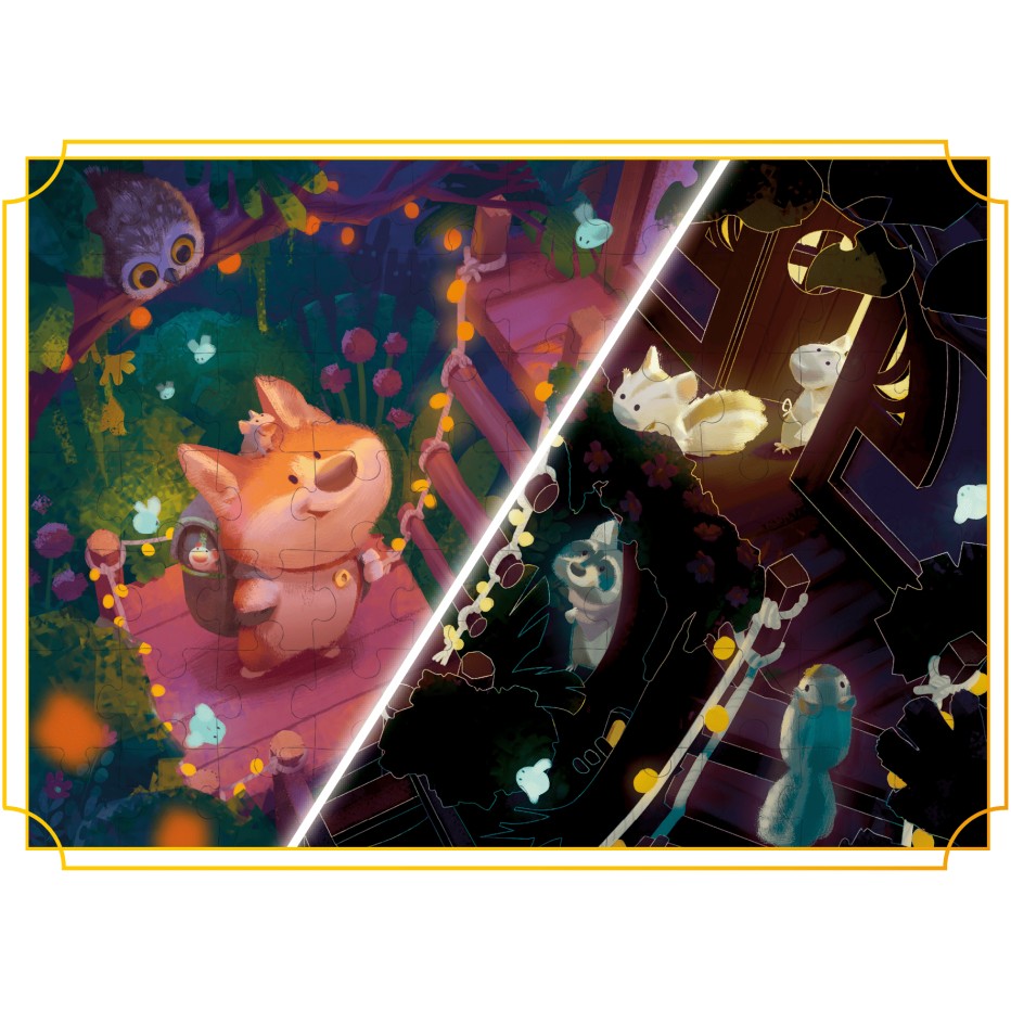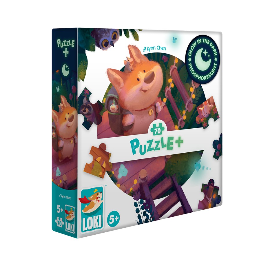 Les Puzzles + sont de retour ! Cette fois-ci, LOKI le facétieux corgi a eu une idée abracadabrante : des puzzles qui s’illuminent dans le noir… pour prolonger l’aventure même à la tombée de la nuit ! Chaque puzzle est basé sur une illustration unique spécialement conçue par une illustratrice enfant, que tu peux retrouver sur un joli poster accompagnant la boîte.