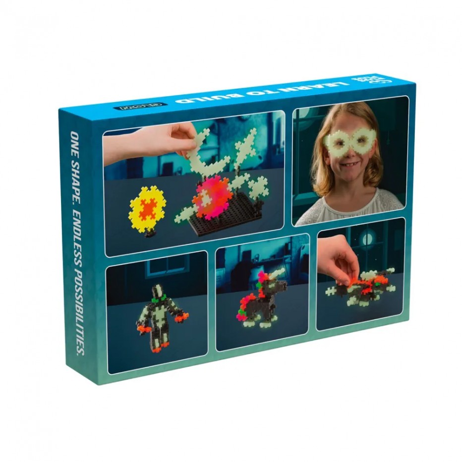 Le kit découverte phosphorescent Plus-Plus offre aux enfants la possibilité de fabriquer des personnages qui brillent dans le noir : robot, petit bonhomme, fantôme ou encore animaux fantastiques (licorne, dragon…). Ils pourront également créer des objets originaux comme des lunettes ou encore se créer un univers rempli d’étoiles, de planètes et de lunes !