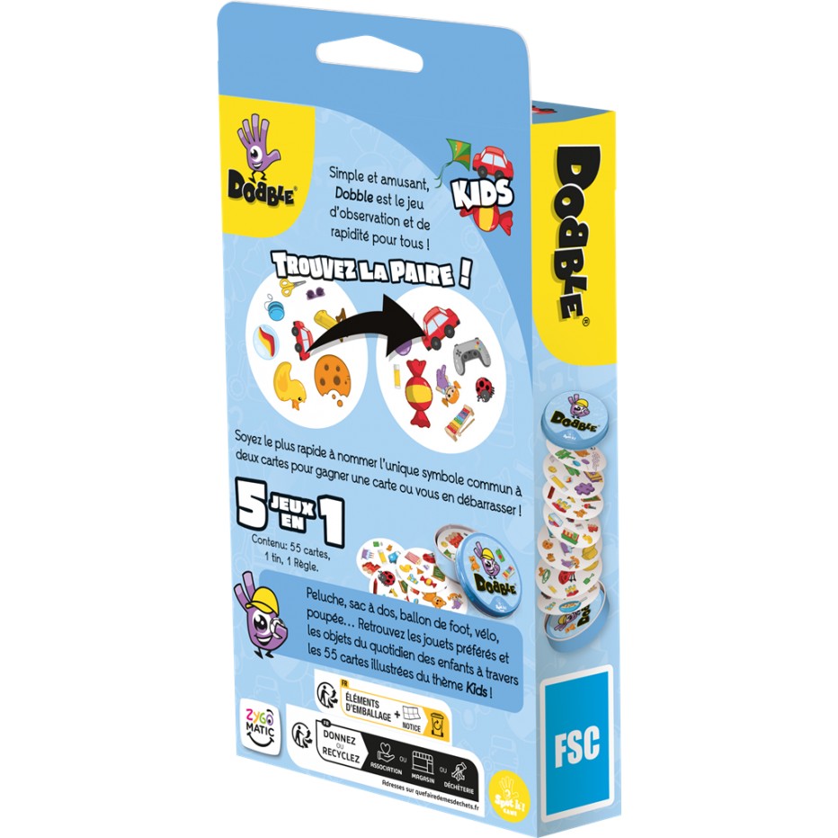 Comme son grand frère Dobble, Dobble Kids propose cinq mini-jeux utilisant ce principe de départ. Trois sont inspirés de Dobble, deux sont spécialement conçus pour cette version destinée aux enfants.