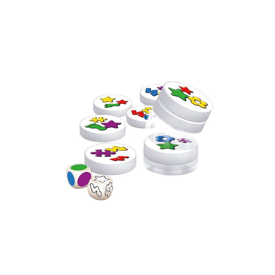 Chacun des 36 disques étalés sur la table combine 3 symboles reproduits dans 3 couleurs différentes. A chaque tour, on lance 2 dés qui indiquent quel symbole trouver et dans quelle couleur. Puis tous les joueurs tentent simultanément de s’emparer d’un maximum de disques reproduisant cette combinaison.